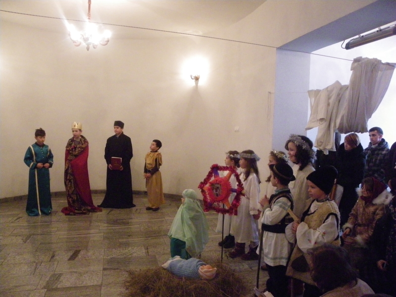 | | Sceneta nasterii Mantuitorului Iisus Hristos prezentata de copiii parohiei | |